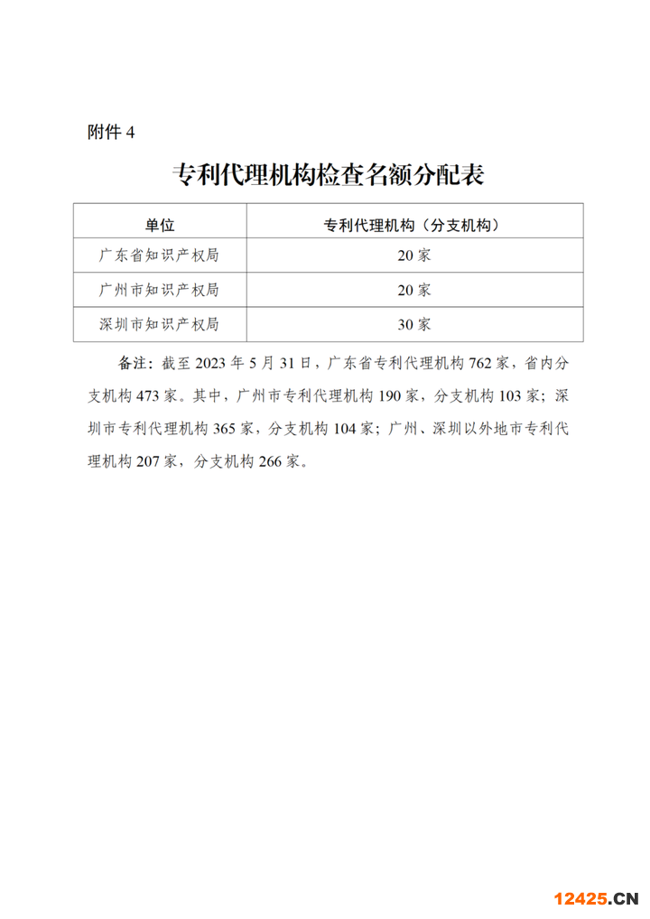 根據(jù)《廣東省人民政府關(guān)于將一批省級(jí)行政職權(quán)事項(xiàng)調(diào)整由廣州、深圳市實(shí)施的決定》(廣東省人民政府令第241號(hào)),具備省級(jí)檢查權(quán)限的廣州、深圳市局分別檢查各自轄區(qū)內(nèi)的專利代理機(jī)構(gòu)、分支機(jī)構(gòu)(廣州市20家,深圳市30家)。省局負(fù)責(zé)對(duì)廣州、深圳市以外19個(gè)市的專利代理機(jī)構(gòu)、分支機(jī)構(gòu)進(jìn)行檢查(共20家)(見(jiàn)附件4)。