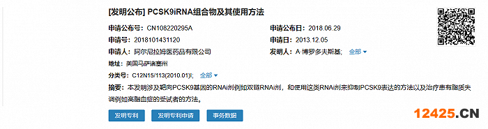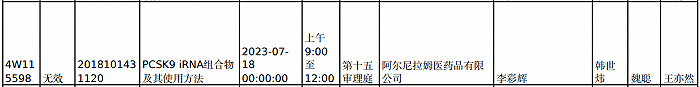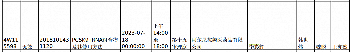 7月3日,國家知識產(chǎn)權(quán)局官網(wǎng)公告信息顯示,阿爾尼拉姆(Alnylam)旗下申請?zhí)枮?ldquo;2018101431120”,發(fā)明名稱為“PCSK9 iRNA組合物及其使用方法”的專利被發(fā)起無效宣告請求,將在2023年7月18日進(jìn)行兩場口審。