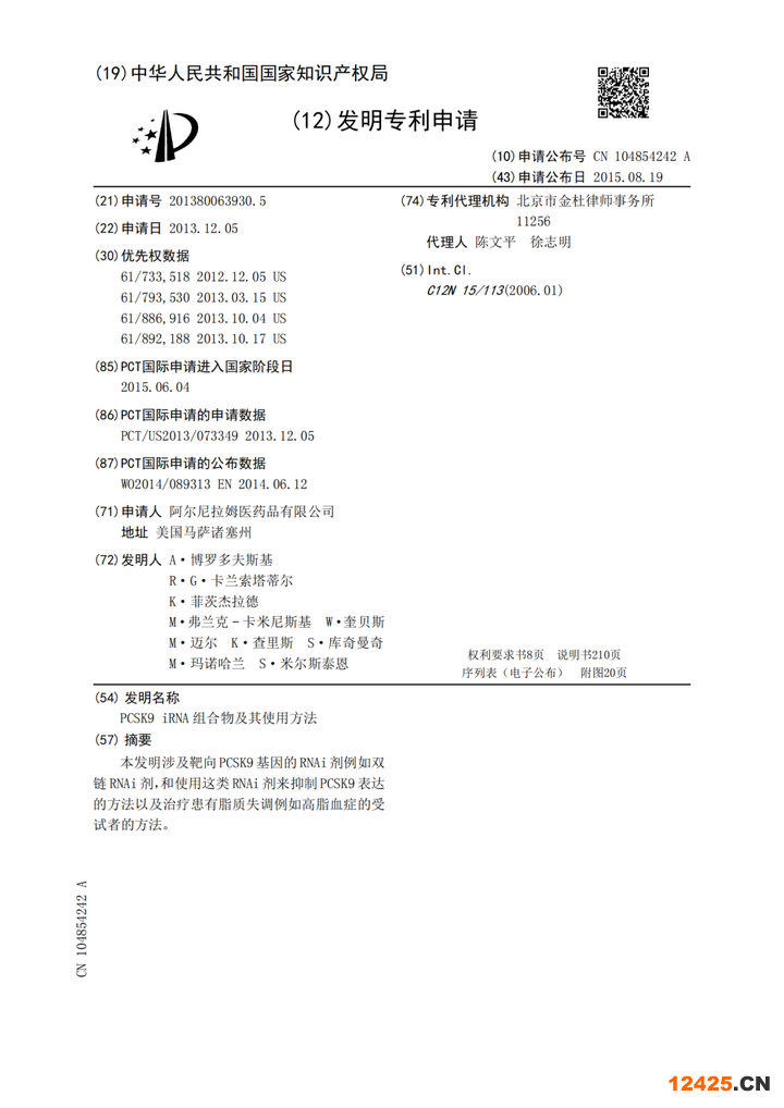 ?“PCSK9iRNA組合物及其使用方法”詳情