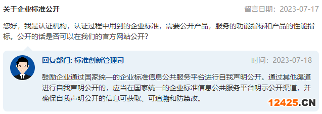 近期,有網(wǎng)友在市場(chǎng)監(jiān)管總局網(wǎng)站公眾留言系統(tǒng)咨詢“關(guān)于企業(yè)標(biāo)準(zhǔn)公開(kāi)”的問(wèn)題,市場(chǎng)監(jiān)管總局給予了答復(fù)。