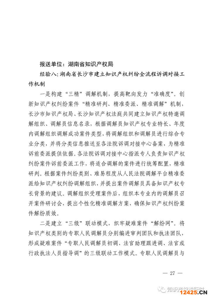 經(jīng)驗八:湖南省長沙市建立知識產(chǎn)權糾紛全流程訴調對接工作機制