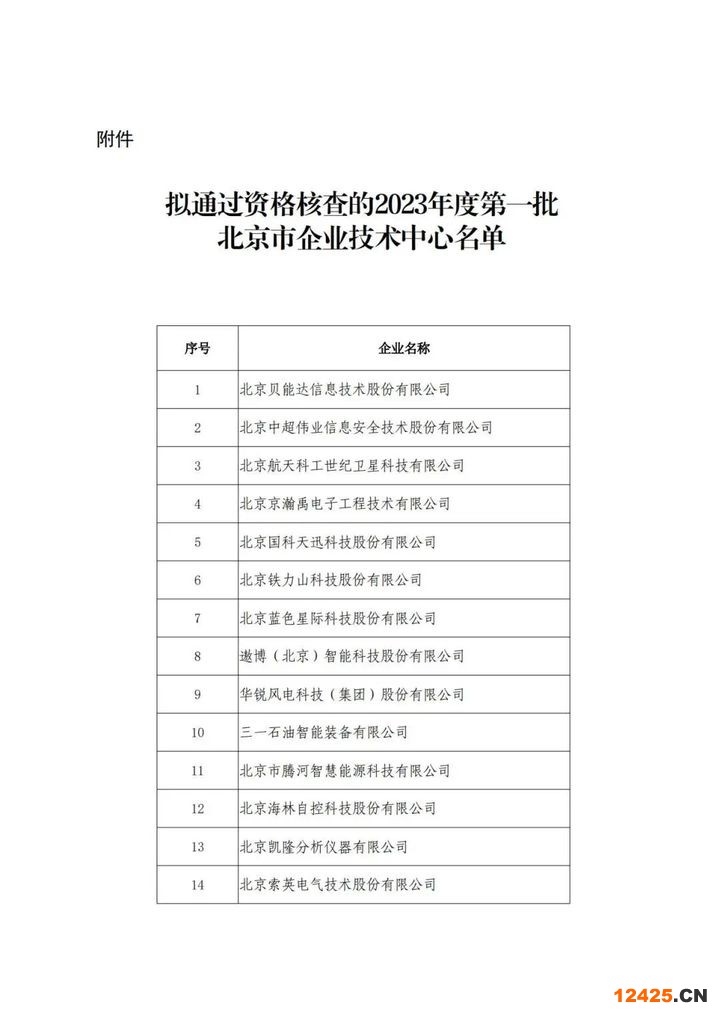 北京市2023年度第一批北京市市級(jí)企業(yè)技術(shù)中心創(chuàng)建名單的通知
