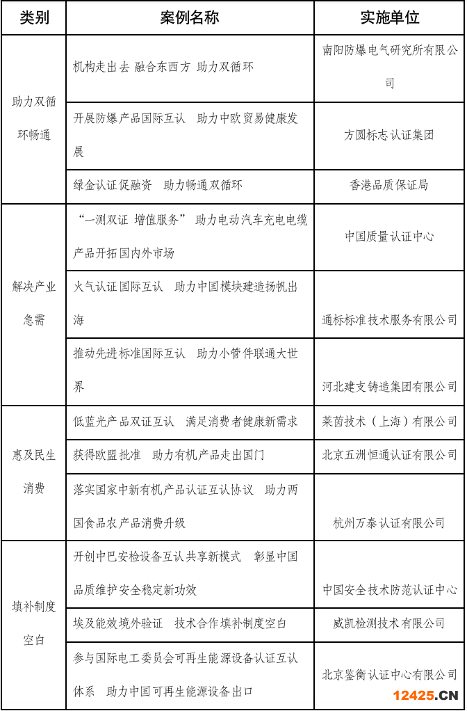 質量認證“小而美”國際互認合作優(yōu)秀案例名單