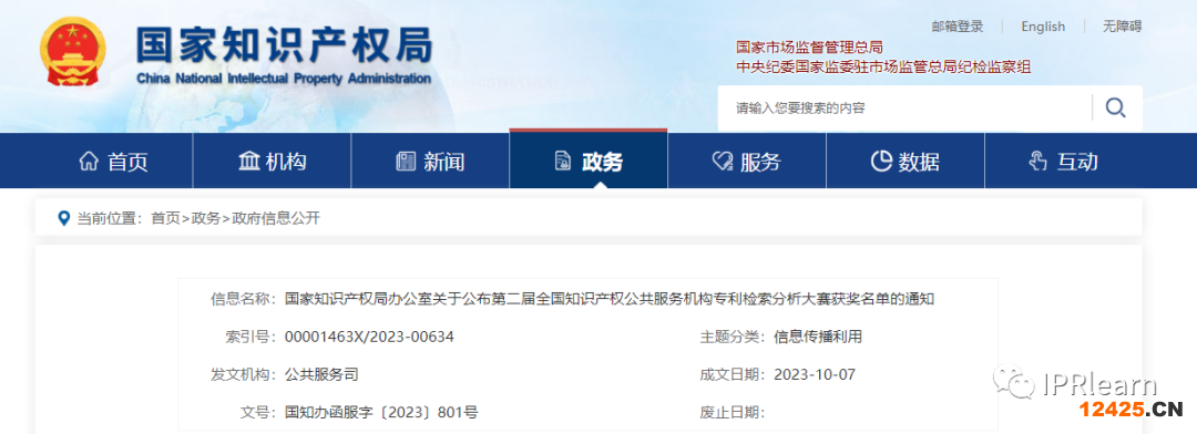 國家知識(shí)產(chǎn)權(quán)局辦公室關(guān)于公布第二屆全國知識(shí)產(chǎn)權(quán)公共服務(wù)機(jī)構(gòu)專利檢索分析大賽獲獎(jiǎng)名單的通知