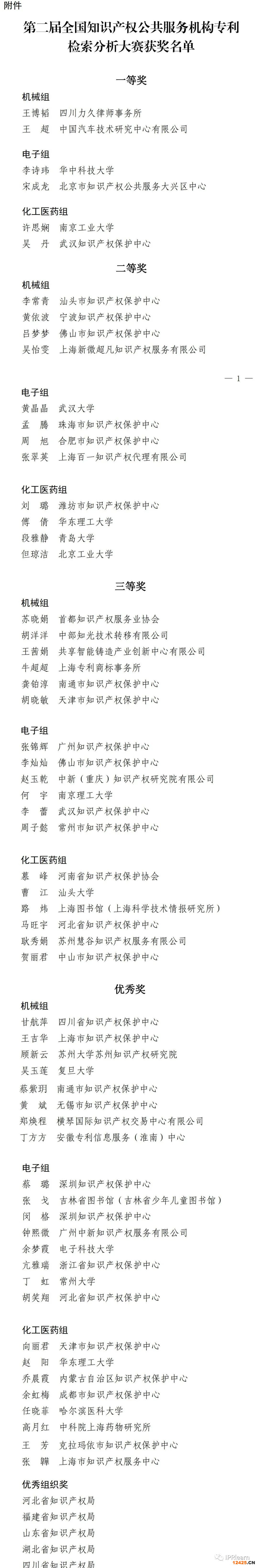 附件:第二屆全國知識(shí)產(chǎn)權(quán)公共服務(wù)機(jī)構(gòu)專利檢索分析大賽獲獎(jiǎng)名單