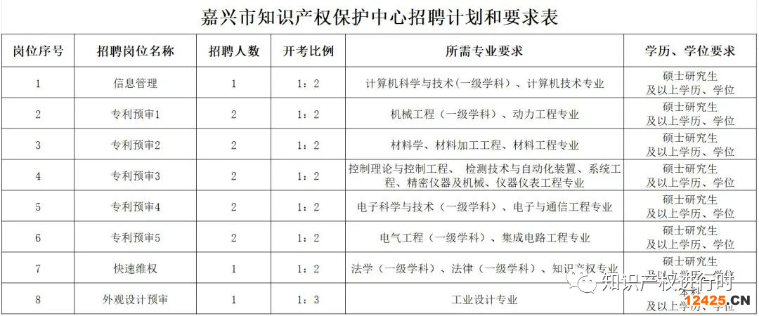 附件:嘉興市知識(shí)產(chǎn)權(quán)保護(hù)中心招聘計(jì)劃和要求表