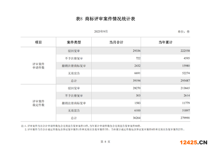 國(guó)家知識(shí)產(chǎn)權(quán)局審查注冊(cè)登記月度報(bào)告2023年1-9月