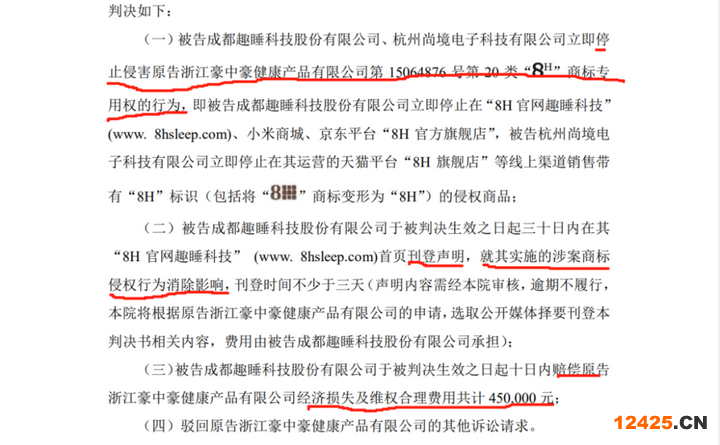 2022年9月,趣睡科技收到了杭州市中級人民法院作出的一審判決,趣睡科技被認(rèn)定侵犯豪中豪公司的商標(biāo)權(quán),判賠金額為45萬。后趣睡科技不服一審判決向浙江省高級人民法院提起上訴。