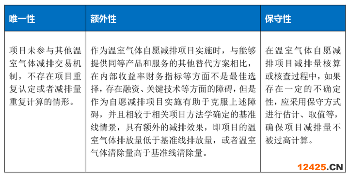 3. 項目應(yīng)符合“三性”要求,即“唯一性”、“額外性”及“保守性”。具體來說: