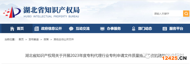 湖北省知識(shí)產(chǎn)權(quán)局關(guān)于開展2023年度專利代理行業(yè)專利申請(qǐng)文件質(zhì)量抽查工作的通知