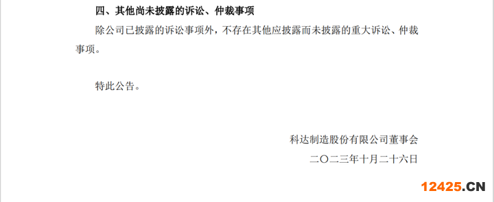 2022年6月27日,科達制造收到佛山中院出具的《民事判決書》((2021)粵 06民初 119 號),佛山中院對案件作出一審判決: