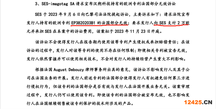 此外,今年9月6日,SES向巴黎司法法院對漢朔科技提起訴訟,請求法院宣布漢朔科技EP3820203B1專利的法國部分無效,并向SES支付2萬歐元及承擔(dān)本案訴訟費(fèi)用。