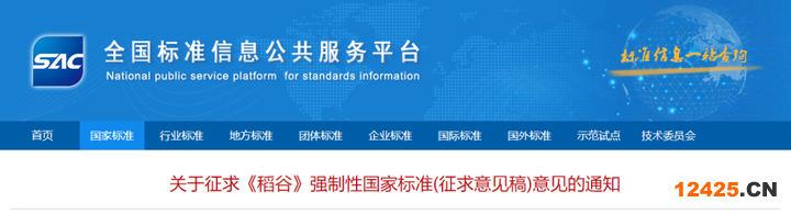 關(guān)于征求《稻谷》強(qiáng)制性國(guó)家標(biāo)準(zhǔn)(征求意見(jiàn)稿)意見(jiàn)的通知