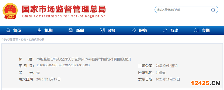 近日,市場監(jiān)管總局辦公廳發(fā)布關(guān)于征集2024年國家計量比對項目的通知。詳情如下: