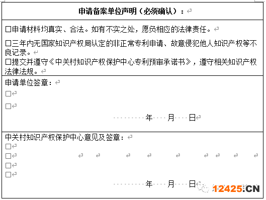 中關(guān)村知識(shí)產(chǎn)權(quán)保護(hù)中心專利預(yù)審承諾書(shū)