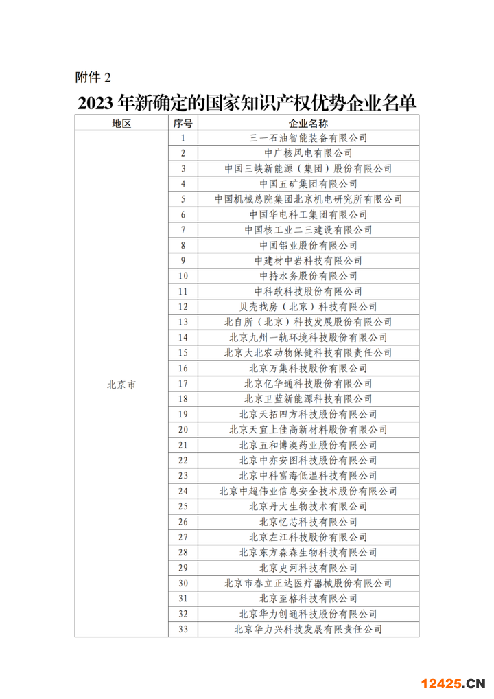 2. 2023年新確定的國家知識產(chǎn)權(quán)優(yōu)勢企業(yè)名單