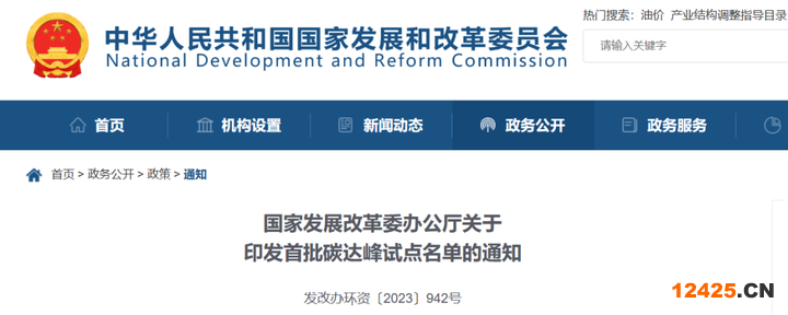 國家發(fā)展改革委辦公廳關于印發(fā)首批碳達峰試點名單的通知發(fā)改辦環(huán)資〔2023〕942號