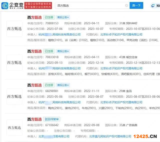 “西方臻選”回應(yīng)賬號被封,多方搶注西方、南方、北方甄選商標(biāo)