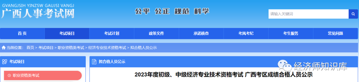 2023年度初級(jí)、中級(jí)經(jīng)濟(jì)專業(yè)技術(shù)資格考試 廣西考區(qū)成績合格人員公示