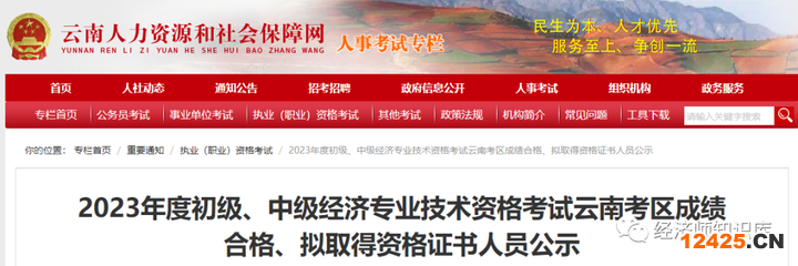 附件:2023年度初級(jí)、中級(jí)經(jīng)濟(jì)專業(yè)技術(shù)資格考試云南考區(qū)成績合格、擬取得資格證書人員公示名單http://hrss.yn.gov.cn/ynrsksw/i1159.html