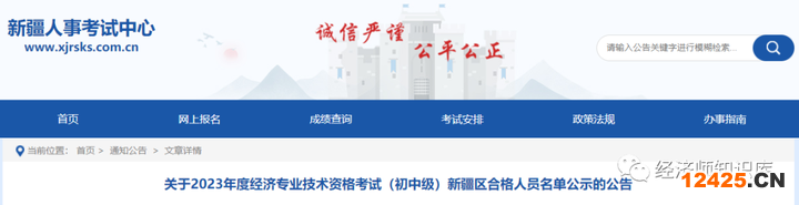 關(guān)于2023年度經(jīng)濟(jì)專業(yè)技術(shù)資格考試(初中級(jí))新疆區(qū)合格人員名單公示的公告
