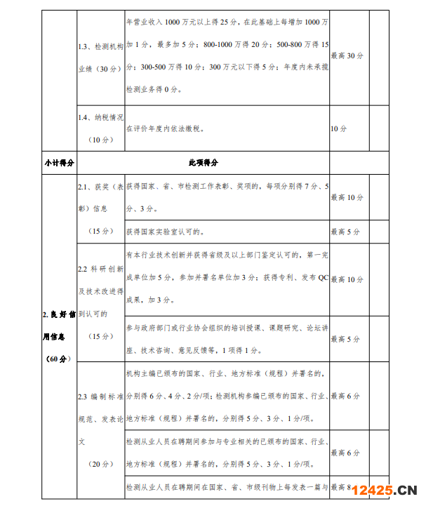 第十五條  檢測(cè)機(jī)構(gòu)信用評(píng)價(jià)實(shí)行量化評(píng)分制,信用得分=基本信用分+良好信用分-不良信用分,依據(jù)檢測(cè)機(jī)構(gòu)信用評(píng)價(jià)計(jì)分標(biāo)準(zhǔn)進(jìn)行計(jì)分。
