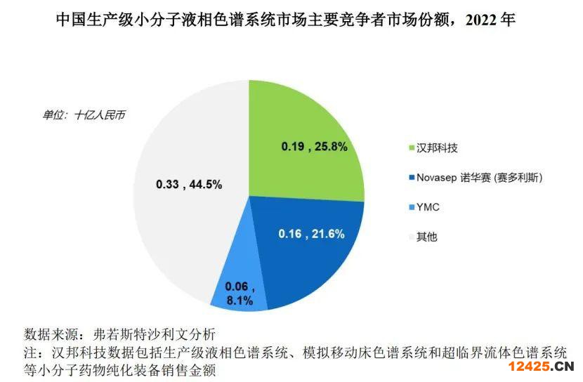 漢邦科技主要以小分子藥物分離純化設備和大分子藥物分離純化裝備為主,據(jù)沙利文數(shù)據(jù)顯示,2022年,漢邦科技在國內(nèi)液相色譜設備(化學藥)的市場份額中排名第五,其中在中國生產(chǎn)級小分子液相色譜系統(tǒng)的市場份額中排名第一,在中國生產(chǎn)級大分子層析系統(tǒng)的市場份額中排名第三。