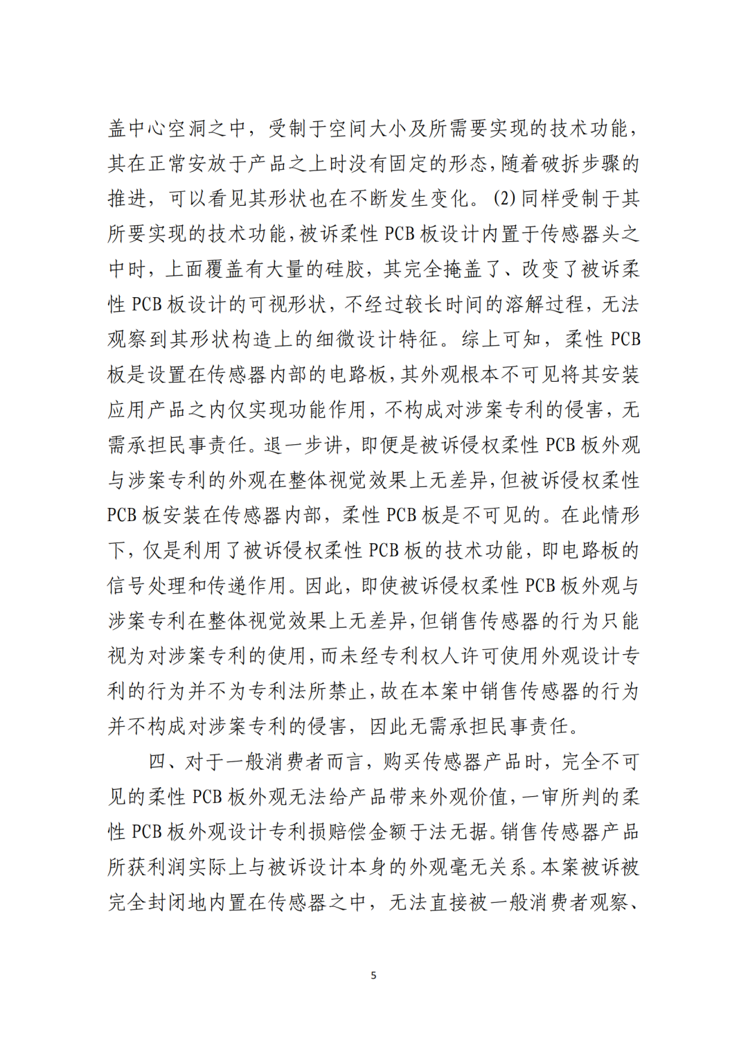 面對唐智科技的指控,運達科技抗辯稱:以上產(chǎn)品從未被作為產(chǎn)品單獨銷售,而是焊接、固定在傳感器產(chǎn)品的內(nèi)部,隨傳感器產(chǎn)品進行銷售,其外觀不可見,不構(gòu)成對涉案專利的侵害,無需承擔民事責任。