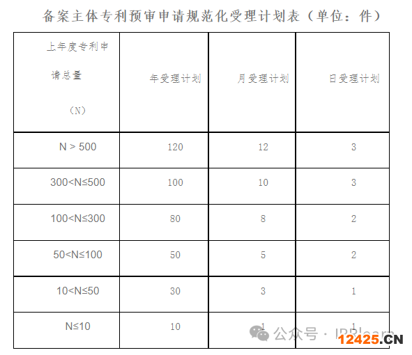 為進(jìn)一步提升專(zhuān)利申請(qǐng)質(zhì)量,推進(jìn)專(zhuān)利預(yù)審審查工作有序開(kāi)展,依據(jù)申請(qǐng)主體上年度專(zhuān)利申請(qǐng)總量(不限專(zhuān)利類(lèi)型)四川省知識(shí)產(chǎn)權(quán)保護(hù)中心發(fā)布《關(guān)于專(zhuān)利預(yù)審申請(qǐng)規(guī)范化受理計(jì)劃調(diào)整事項(xiàng)的通知》自2024年1月21日起實(shí)施。備案主體按照受理計(jì)劃有序提交申請(qǐng):