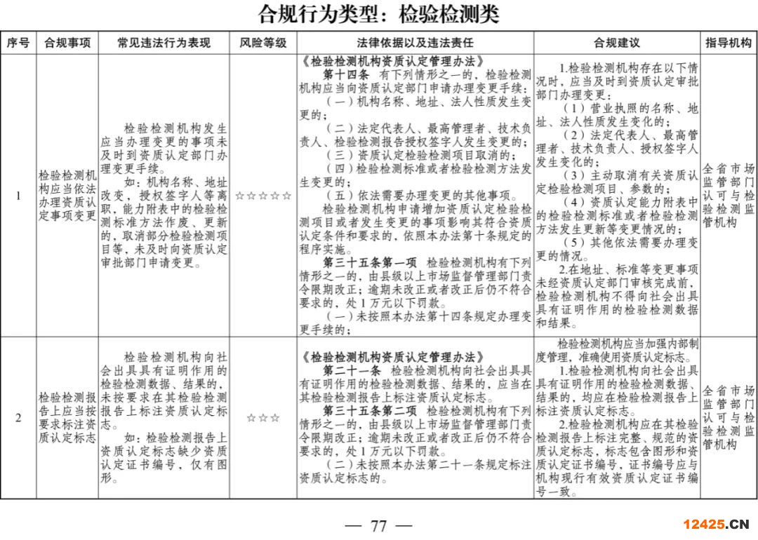 合規(guī)行為類型:檢驗(yàn)檢測(cè)類