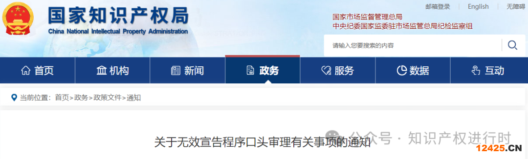 關(guān)于無效宣告程序口頭審理有關(guān)事項(xiàng)的通知