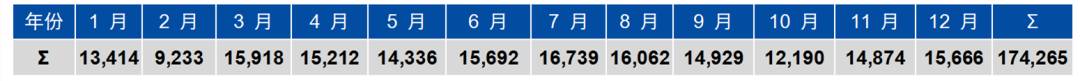 全年歐盟商標(biāo)申請(qǐng)量(按月統(tǒng)計(jì))