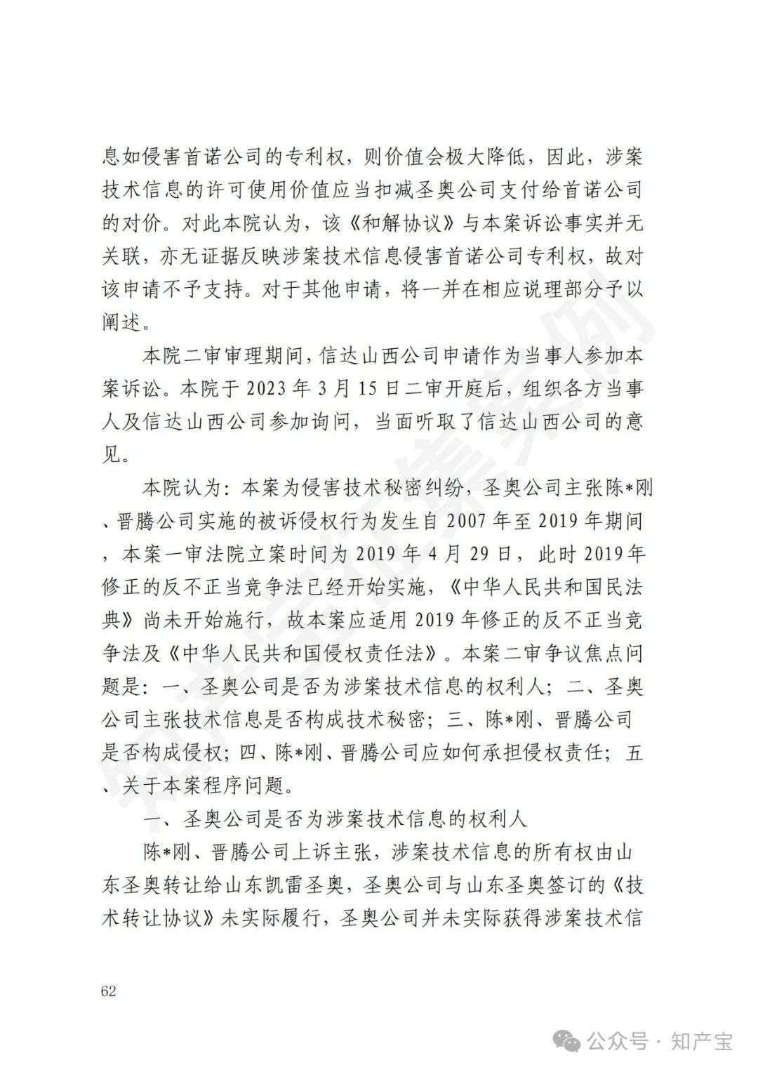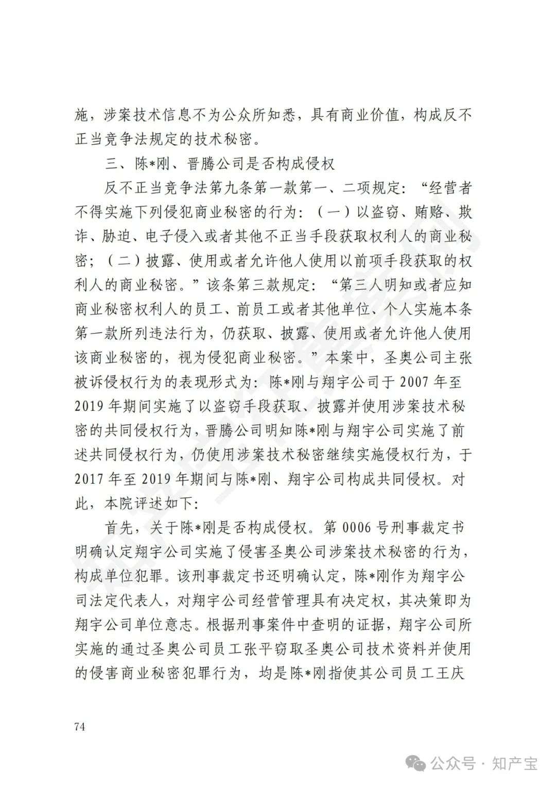首先,法院參照連城評估鑒定報告的評估結果,認定圣奧公司的技術信息在2012年4月21日的許可價值為20154萬元。這一數(shù)據(jù)成為確定賠償數(shù)額的重要依據(jù)。法院認為,陳*剛、晉騰公司應當為此承擔賠償責任,賠償圣奧公司相應的經濟損失。