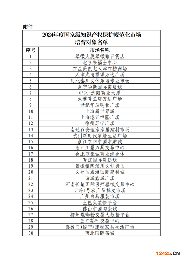 附件:2024年度國家級知識產(chǎn)權(quán)保護規(guī)范化市場培育對象名單