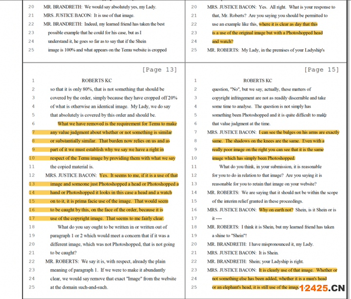 從相關(guān)文件來看,被告Temu在訴訟中的情況似乎不怎么樂觀。在庭審中,當(dāng)Temu用的一張圖片來表明未侵犯涉訴圖片時,主審法官凱林·培根 (Kelyn Bacon)指出該圖片是通過Photoshop處理過的圖片。
