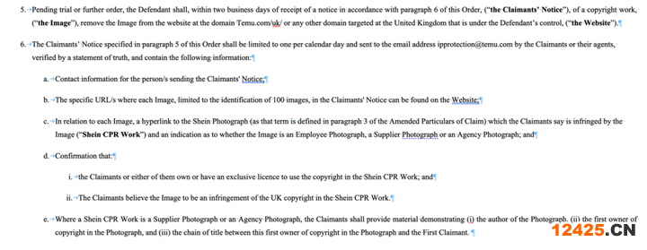 英國法院在該案件中授予的臨時禁令明確,被告Temu需要在收到法院禁令后的兩個工作日內(nèi)刪除其相關(guān)網(wǎng)站及平臺中的涉訴圖片。