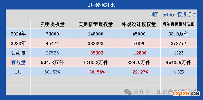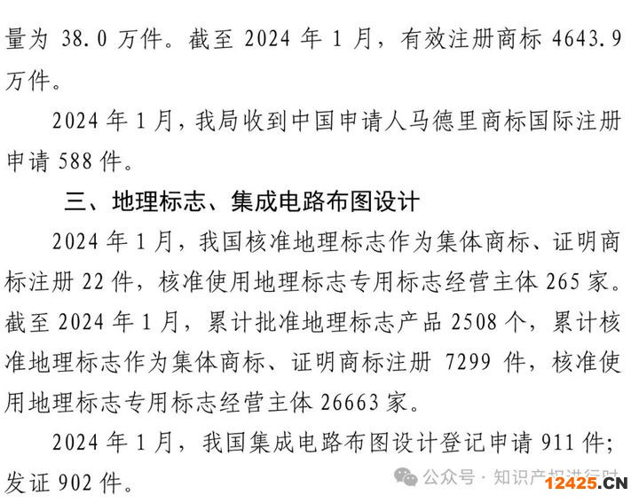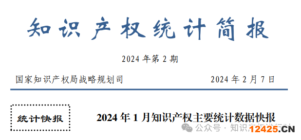 2024年1月知識產(chǎn)權主要統(tǒng)計數(shù)據(jù)快報
