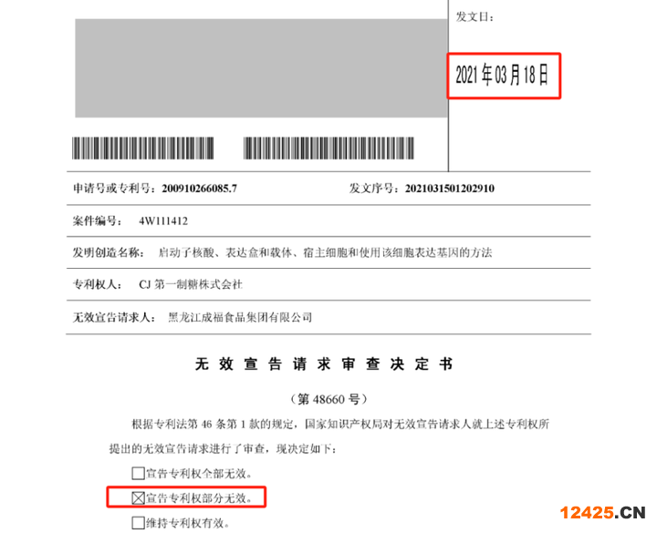 2021年3月,在無效宣告請求人為黑龍江成福食品集團(tuán)有限公司的無效審查中,國知局對200910266085.7號專利做出第四次審查決定(第48660號):在第28428號無效決定維持有效的權(quán)利要求的基礎(chǔ)上維持該專利權(quán)有效。