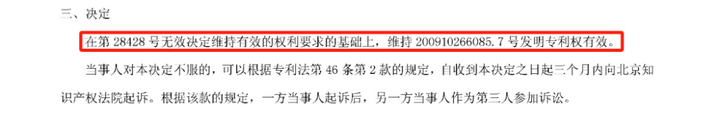 2020年10月,在無效宣告請求人為鄭某的無效審查中,國知局對200910266085.7號專利做出第三次審查決定(第46582號),同樣在第28428號無效決定維持有效的權(quán)利要求的基礎(chǔ)上維持該專利權(quán)有效。