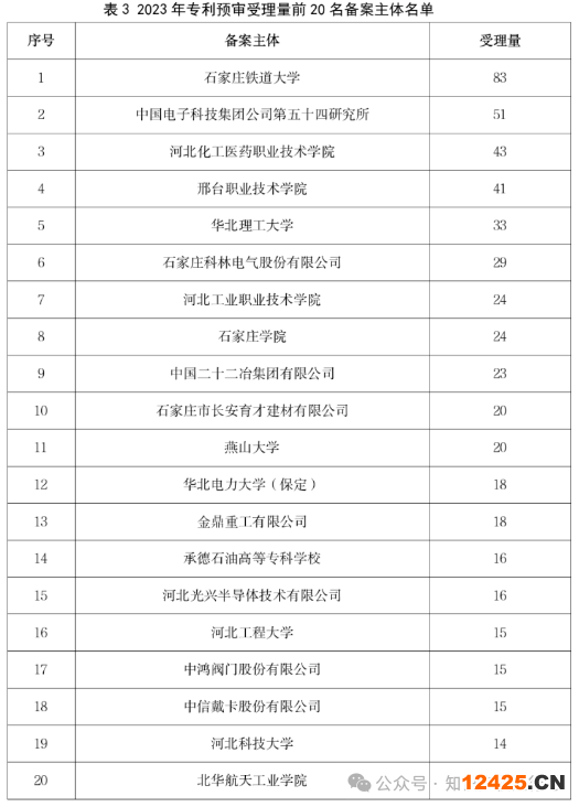 2023年專利預(yù)審受理量前20名的備案主體名單見表3.