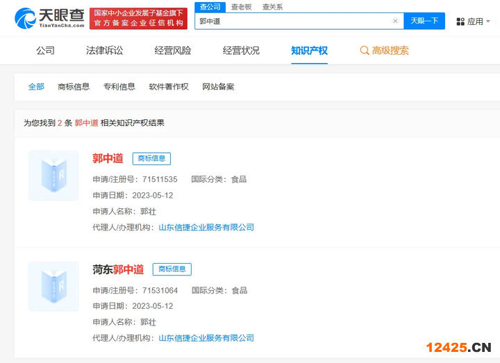 天眼查App顯示,郭壯曾于去年5月申請“郭中道”“菏東郭中道”商標(biāo),國際分類為食品,當(dāng)前商標(biāo)申請均已被駁回,處于無效狀態(tài)。值得一提的是,“郭有才”商標(biāo)自2016年起即被申請注冊,申請人包括自然人郭某某、陜西某餐飲公司,目前多枚商標(biāo)已成功注冊。