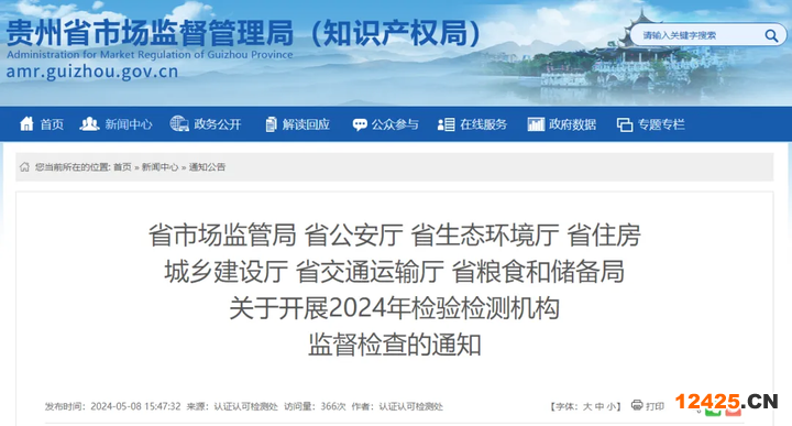貴州省今年將抽查100家檢驗(yàn)檢測(cè)機(jī)構(gòu),2024年檢驗(yàn)檢測(cè)機(jī)構(gòu)監(jiān)督檢查的通知