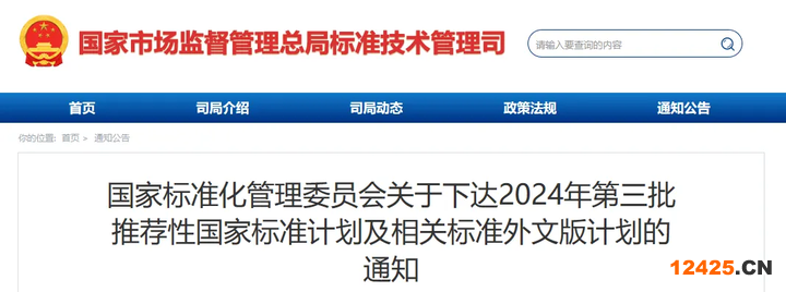 國家標(biāo)準(zhǔn)化管理委員會關(guān)于下達(dá)2024年第三批推薦性國家標(biāo)準(zhǔn)計劃及相關(guān)標(biāo)準(zhǔn)外文版計劃的通知