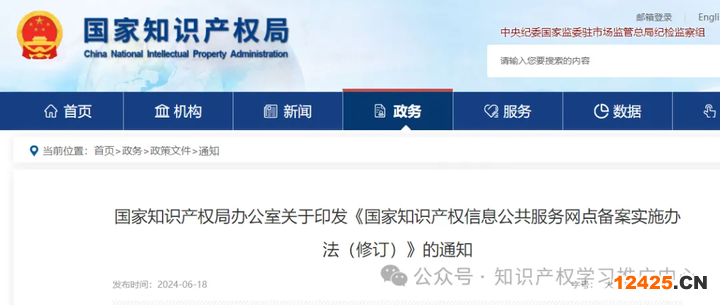 國(guó)知局印發(fā)《國(guó)家知識(shí)產(chǎn)權(quán)信息公共服務(wù)網(wǎng)點(diǎn)備案實(shí)施辦法(修訂)》
