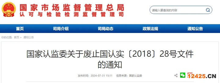 國家認監(jiān)委關于廢止國認實〔2018〕28號文件的通知