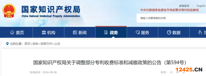 國家知識產(chǎn)權(quán)局關(guān)于調(diào)整部分專利收費(fèi)標(biāo)準(zhǔn)和減繳政策的公告(第594號)