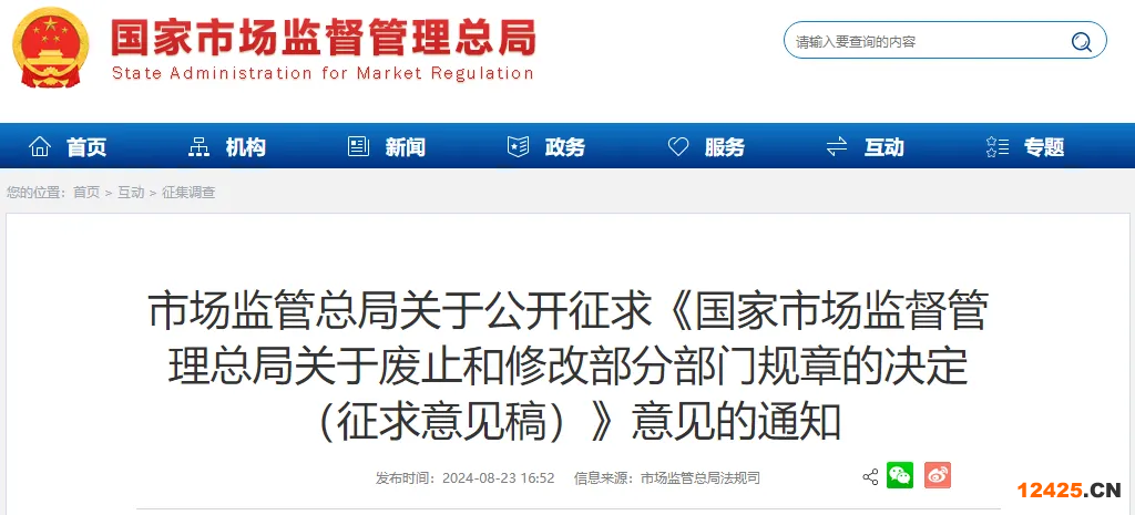 市場監(jiān)管總局關(guān)于公開征求《國家市場監(jiān)督管理總局關(guān)于廢止和修改部分部門規(guī)章的決定(征求意見稿)》意見的通知