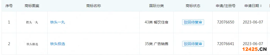 網(wǎng)紅鐵頭關(guān)聯(lián)公司商標(biāo)申請(qǐng)均被駁回