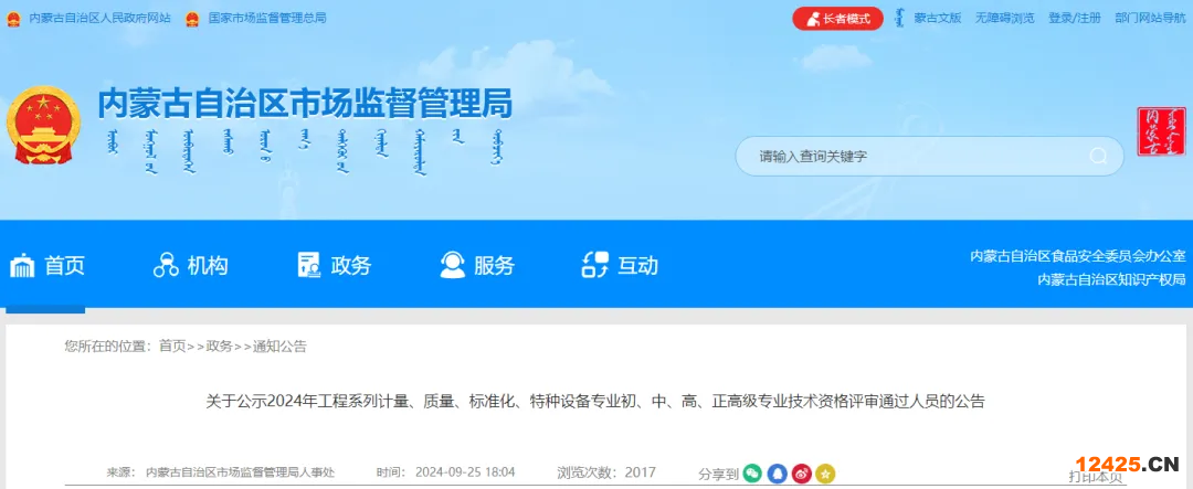 內(nèi)蒙古2024年工程系列計(jì)量、質(zhì)量、標(biāo)準(zhǔn)化、特種設(shè)備專業(yè)初、中、高、正高級(jí)專業(yè)技術(shù)資格評(píng)審?fù)ㄟ^(guò)人員的公告