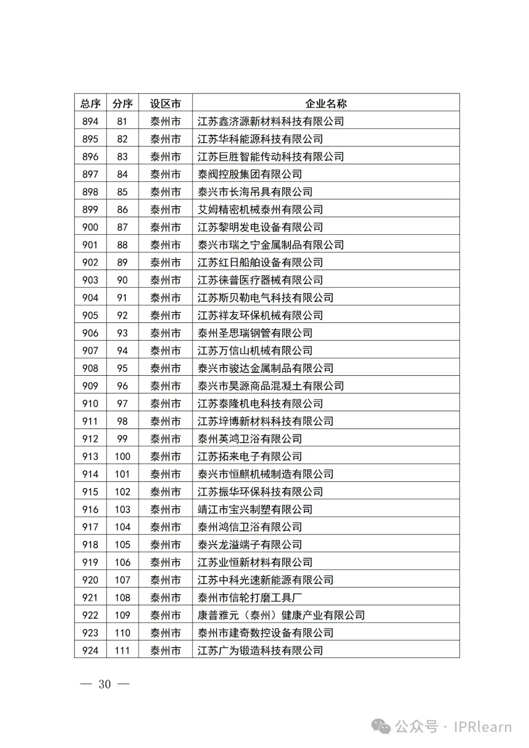 2024年江蘇省第三批企業(yè)知識產權管理貫標備案單位名單
